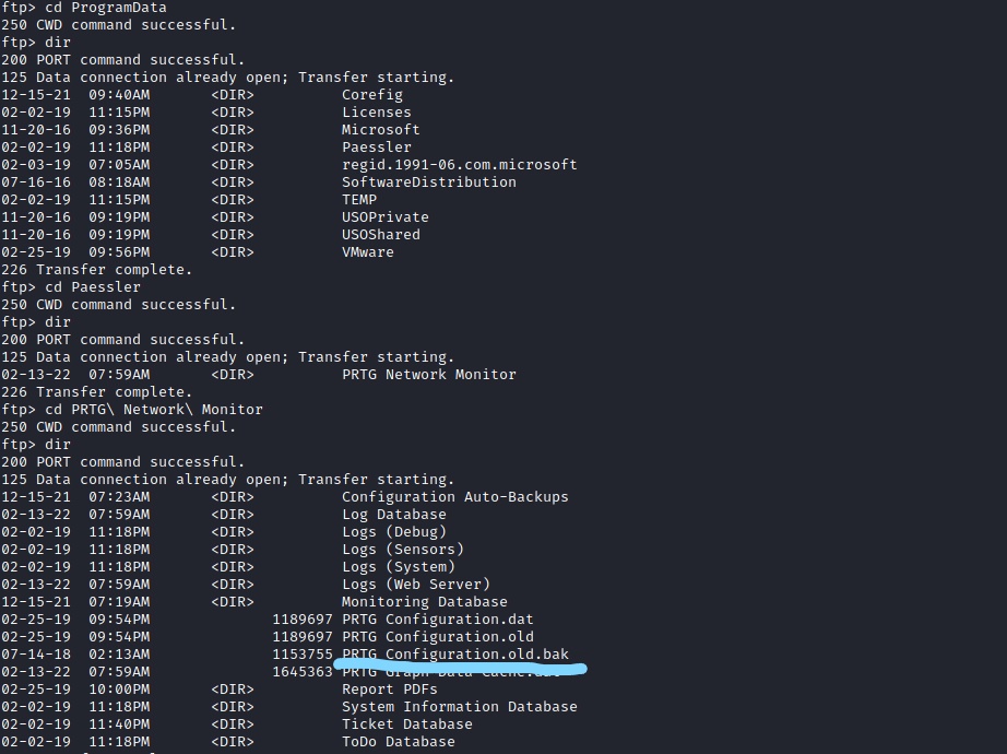 As you can see there is a file called “PRTG Configuration.old.bak” , I decided to download this to my system and check to see if there were any stored credentials as the website requires login creds and it is running PRTG.